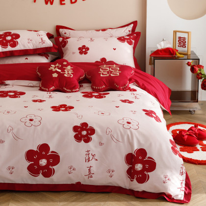 双面100支全棉结婚四件套高级感陪嫁被套床单结婚床上用品纯棉