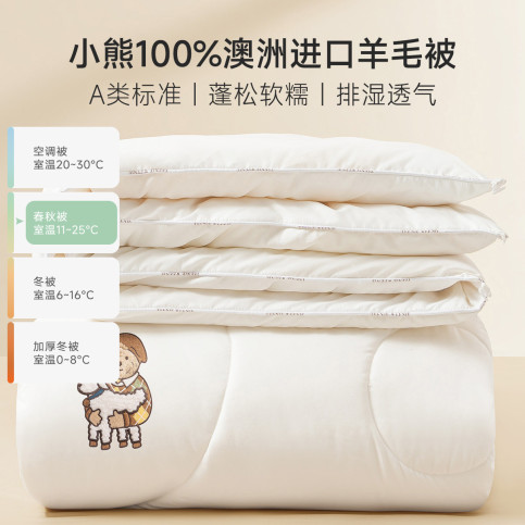 【100%羊毛被】小熊澳洲羊毛被秋学生冬被宿舍春秋保暖四季被