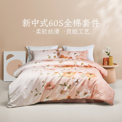 【60支贡缎】罗莱生活乐蜗奢华套件纯棉被套床上用品三/四件套