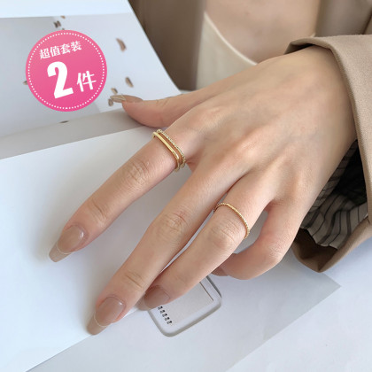 2024款首饰【2件套】方戒方形戒指女时尚食指戒指环开口素圈