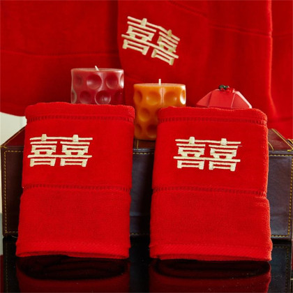 红色结婚毛巾婚庆纯棉陪嫁新婚情侣大红喜字回礼伴手礼一对装