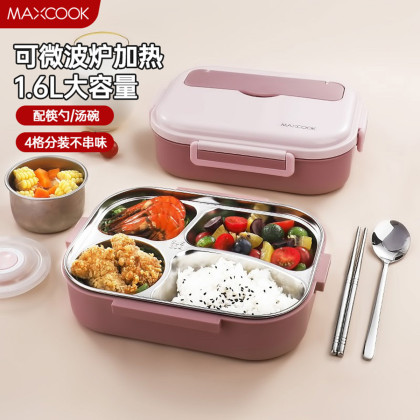 【升级大容量304不锈钢饭盒】4格/5格配餐具汤碗学生便当盒饭盒