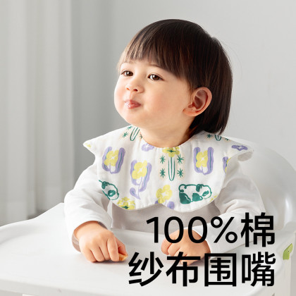 纯棉口水巾新生婴儿宝宝口水兜纱布花瓣围嘴全棉0-3岁三条装