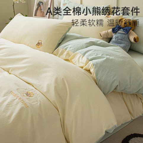 【爆款】小熊全棉水洗棉家用床上用品四件套纯棉被套床单三件套