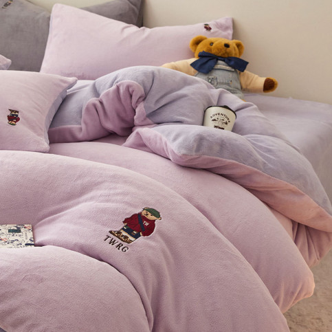 小熊纯色加厚保暖牛奶绒被套单件秋冬双面毛绒被罩单人双人家用